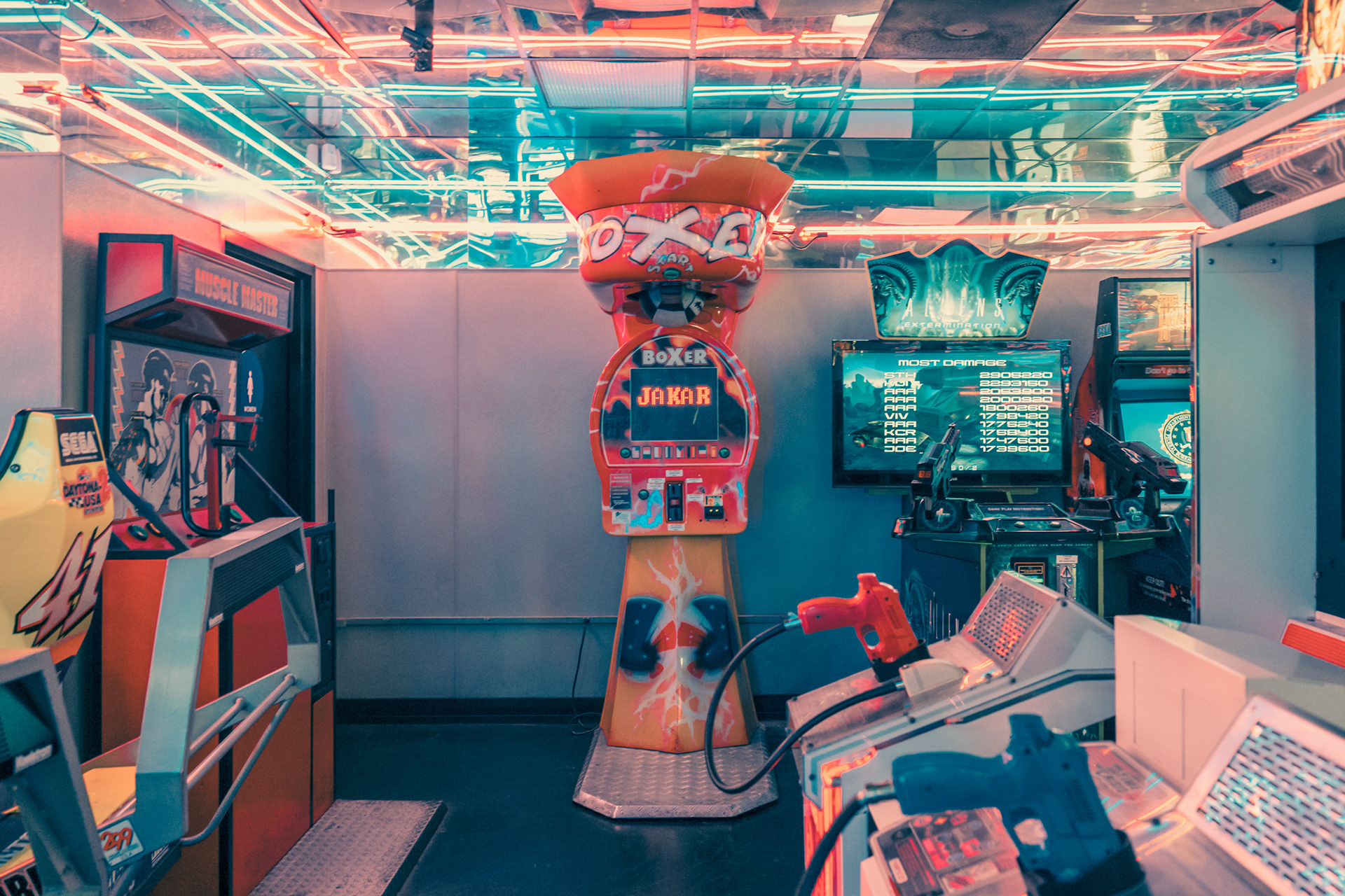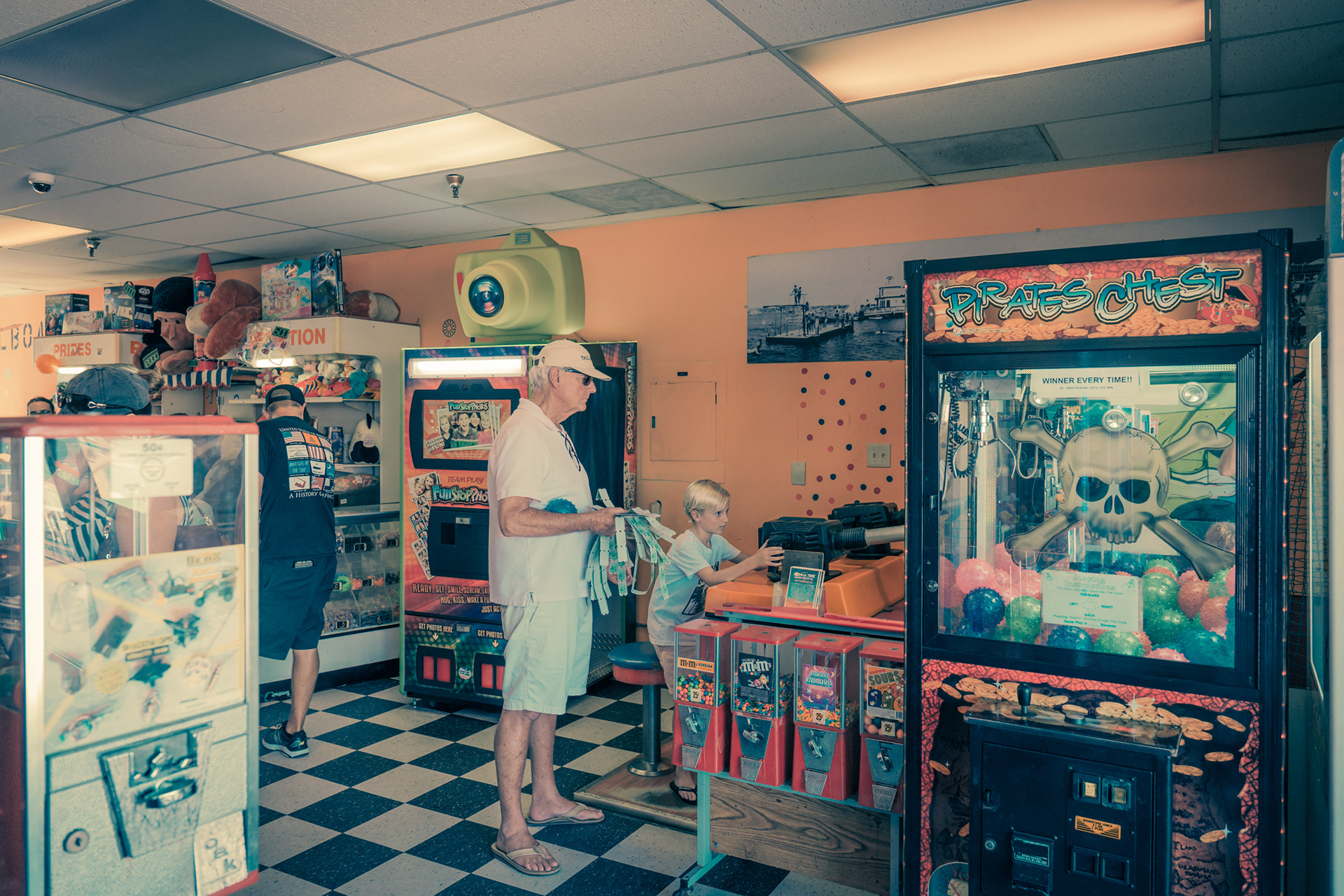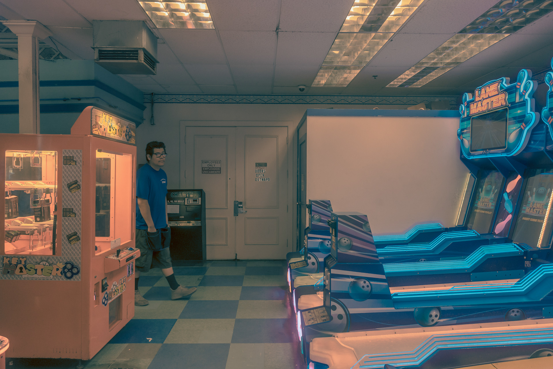 Franck Bohbot’s photographs always remind us of candy waiting behind the vitrine in a movie theatre. The colors explode with potential, yet somehow welcoming as if soaked in sugared memory. In his series Back to The Arcades Bohbot’s mastery of color, and ability to frame a narrative is in full display. Through his lens, each arcade opens to the viewer like a tightly woven short film, noiresque even. For there is a feeling of criminality here as if you’ve found your way into a speakeasy, where acts are taking place that is both hidden and fringe, yet celebrated by those lucky enough to have produced the password to the doorman. And in the midst of this are the machines themselves: grouped together in collections by those obsessed with them, tantalizing to touch, to play. Bohbot’s eye shows us this side of Los Angeles, where inhabitants have grouped together to experience this frivolity, to be solitary yet in groups, to revel in the fantastical pursuit of dreams. All of this is bathed in Bohbot’s unique light, much like the city itself, a place where joy chases the sun, and when it sets, the occupants of the city find their hidden places.