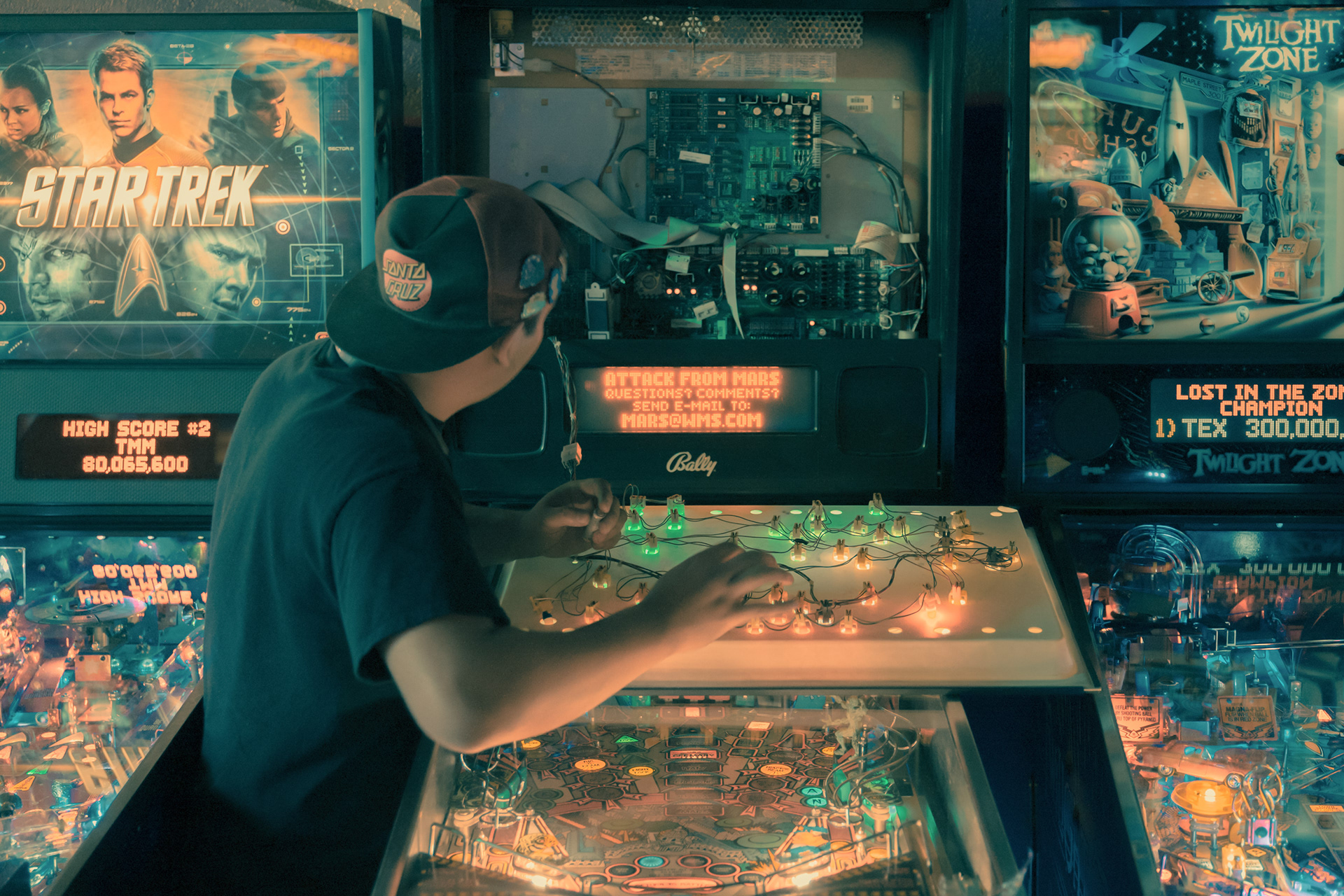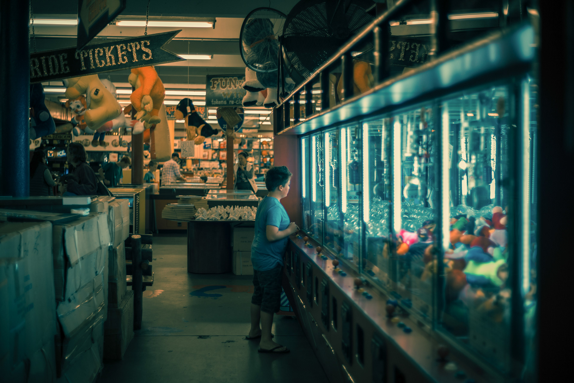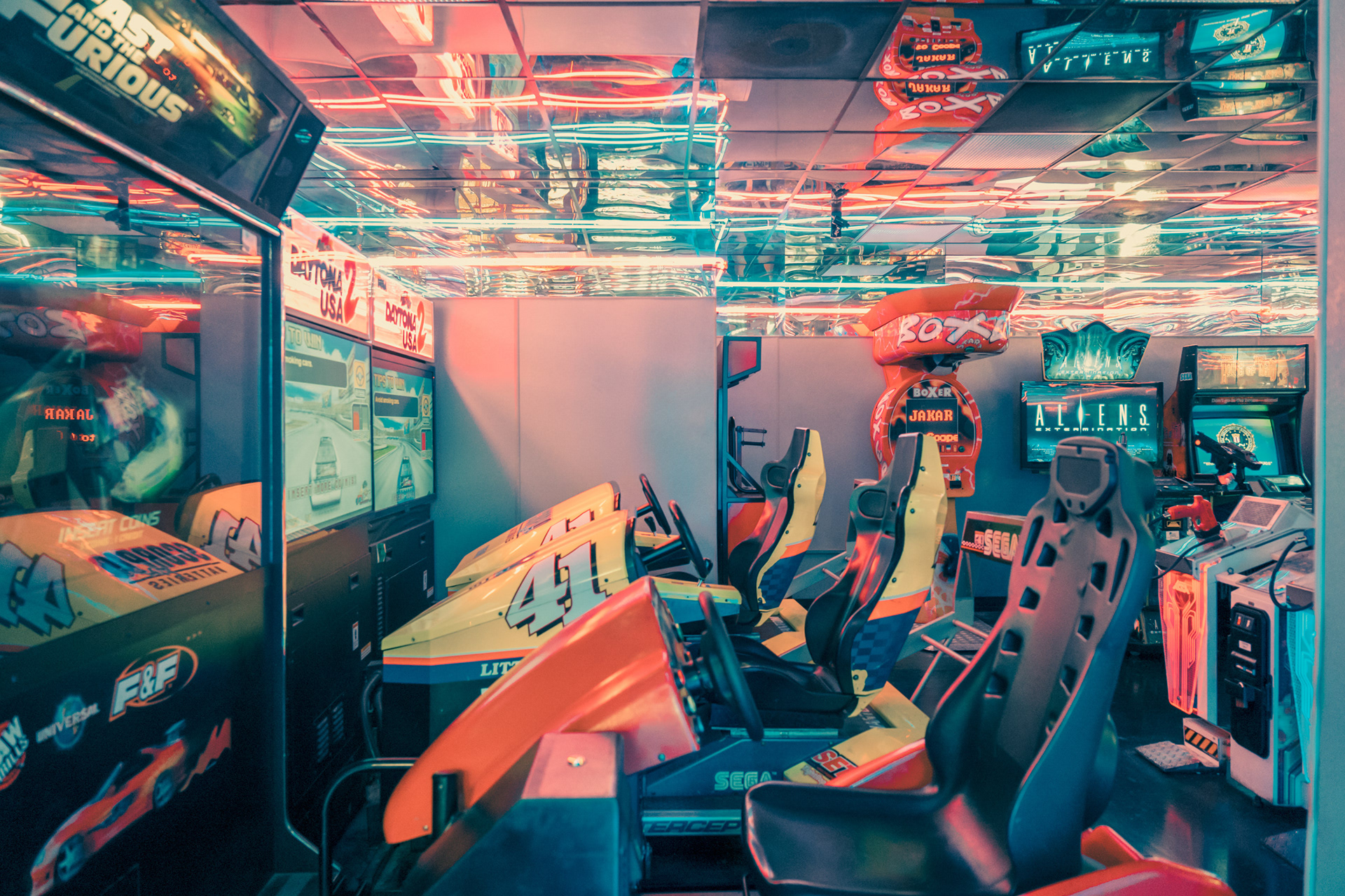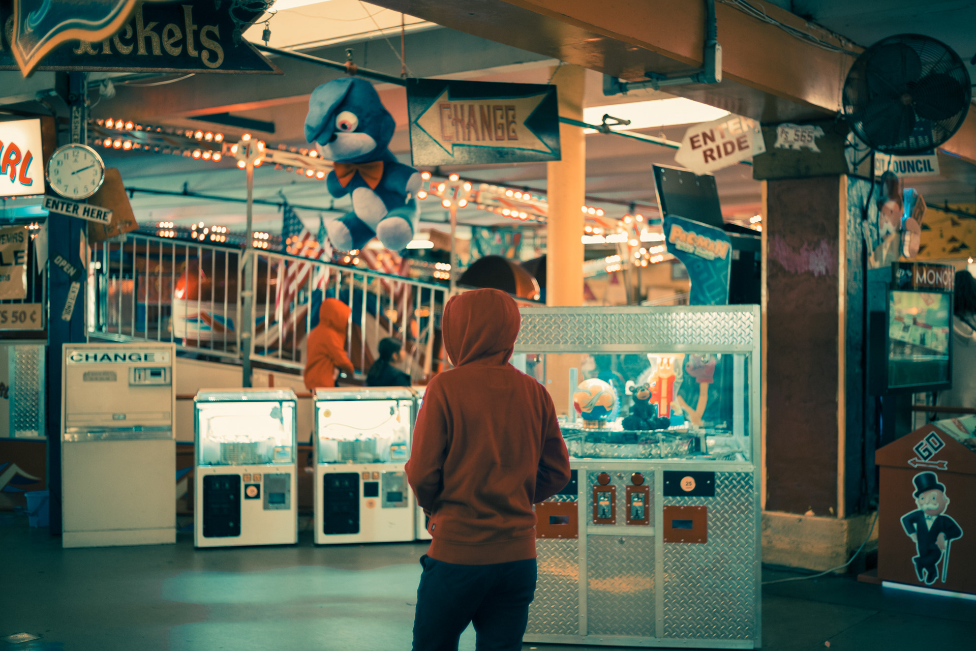 Franck Bohbot’s photographs always remind us of candy waiting behind the vitrine in a movie theatre. The colors explode with potential, yet somehow welcoming as if soaked in sugared memory. In his series Back to The Arcades Bohbot’s mastery of color, and ability to frame a narrative is in full display. Through his lens, each arcade opens to the viewer like a tightly woven short film, noiresque even. For there is a feeling of criminality here as if you’ve found your way into a speakeasy, where acts are taking place that is both hidden and fringe, yet celebrated by those lucky enough to have produced the password to the doorman. And in the midst of this are the machines themselves: grouped together in collections by those obsessed with them, tantalizing to touch, to play. Bohbot’s eye shows us this side of Los Angeles, where inhabitants have grouped together to experience this frivolity, to be solitary yet in groups, to revel in the fantastical pursuit of dreams. All of this is bathed in Bohbot’s unique light, much like the city itself, a place where joy chases the sun, and when it sets, the occupants of the city find their hidden places.